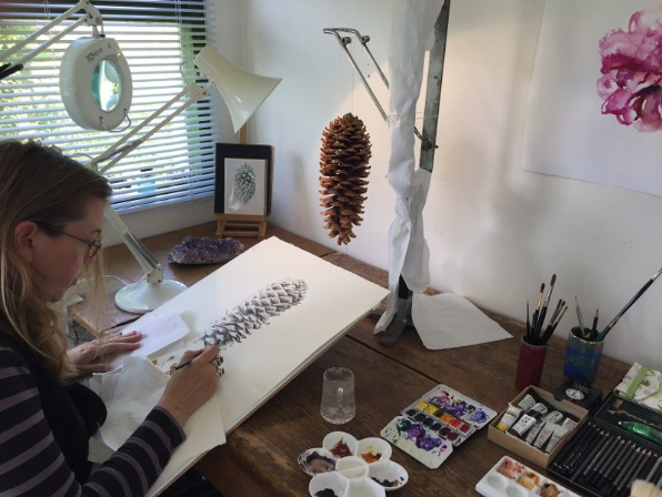 Hard at work finishing my painting for the Bedgebury Florilegium Society Exhibition at the Artichoke Gallery in Ticehurst.