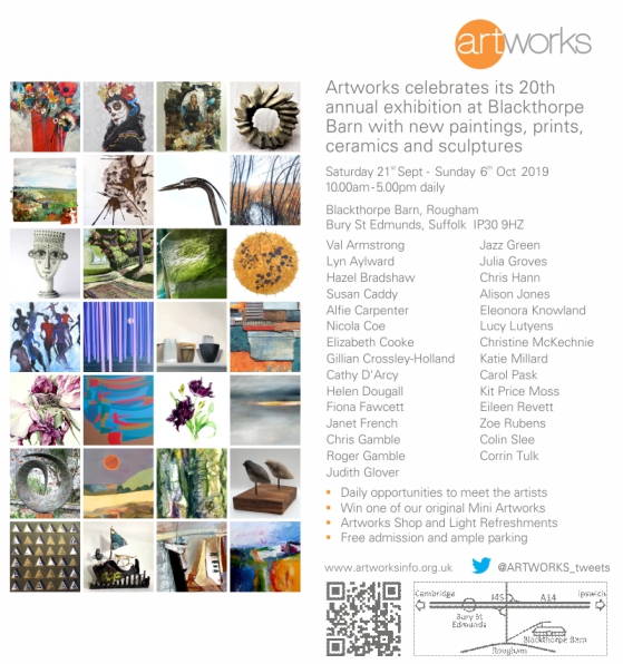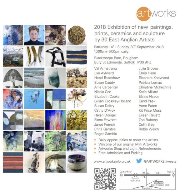 I am delighted to now be a member of 'Artworks' and will be exhibiting new paintings this year at their 20th anniversay exhibition at the magnificent Blackthorpe Barn in Suffolk