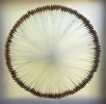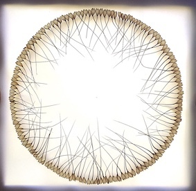 The concentric circles were inspired by glass trails found on Anglo - Saxon cone beakers and from the extensive glass fragment assemblage and glass grave goods excavated at Lyminge.